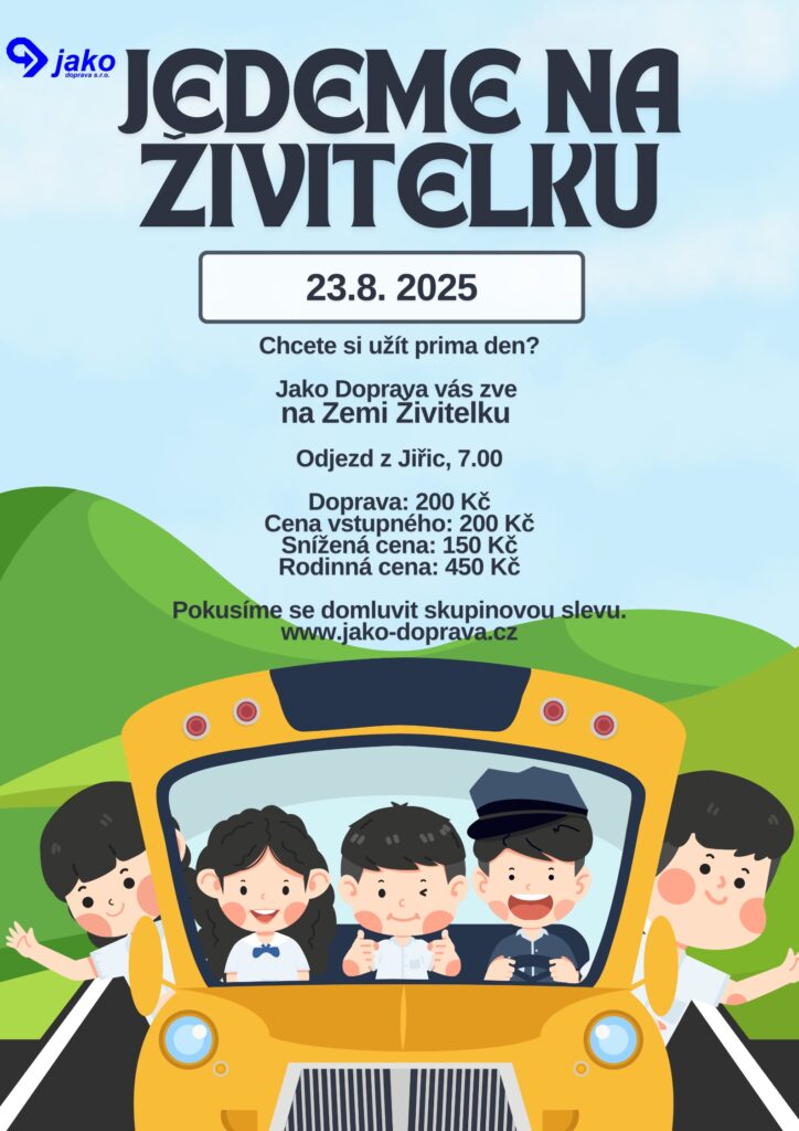 dnes vám nabízíme účast na celodenní akci. Malá začínající dopravní kancelář z Jiřic pořádá autobusový zájezd do Českých Budějovic na výstavu Země živitelka, a to v sobotu 23.8.2025.Odjezd z Jiřic v 7:00 se zastávkou v Lysé pro případné zájemce.
